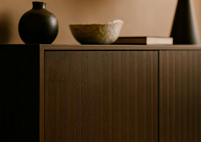 Ante, ripiani per tavoli e consolle, boiserie e pannelli murali: elementi decorativi che arricchiscono lo spazio con texture e giochi di luce.